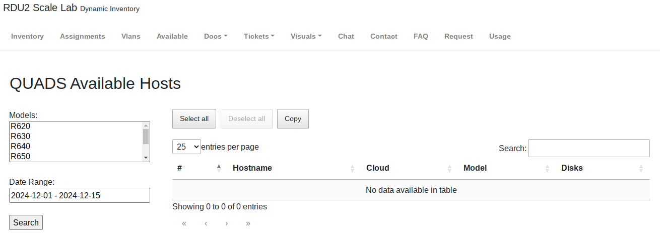 QUADS let’s you search for availability of systems by model and hardware details for future scheduling.
